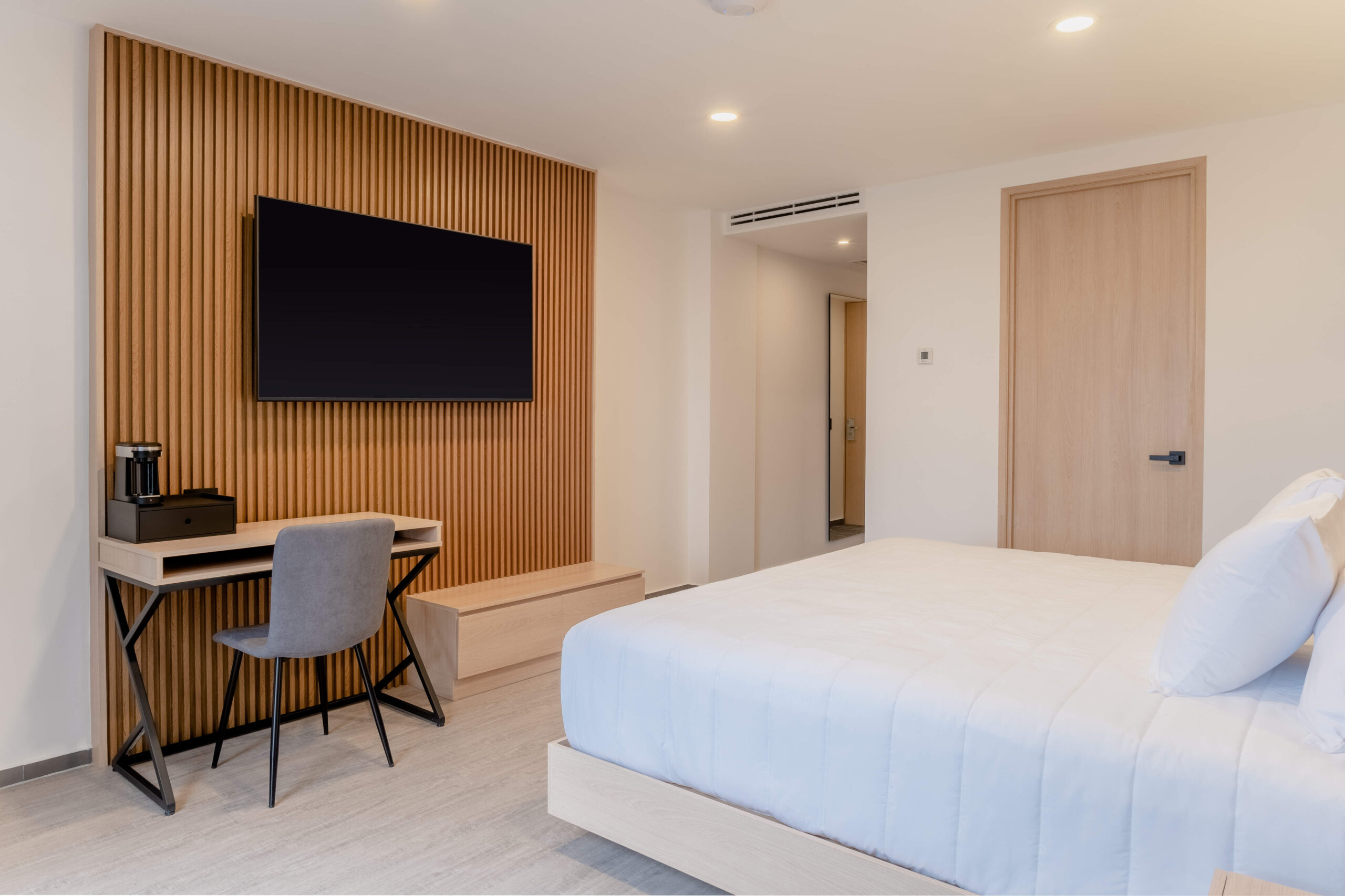 Nada de trajes de baño en el lobby ni mascotas correteando: un entorno serio, sobrio y centrado en tu productividad.